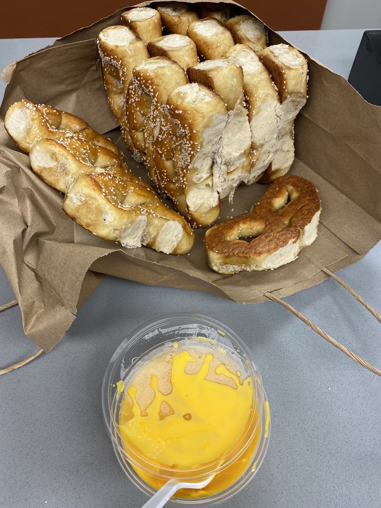 The menu boasts an impressive variety of options, from classic salted pretzels to creative twists like pizza-flavored ones. The accompanying dips, especially the rich white cheddar cheese sauce, elevate the experience further. It's not just about food; it’s a community gathering spot where friendly staff welcomes everyone with warmth and genuine hospitality.